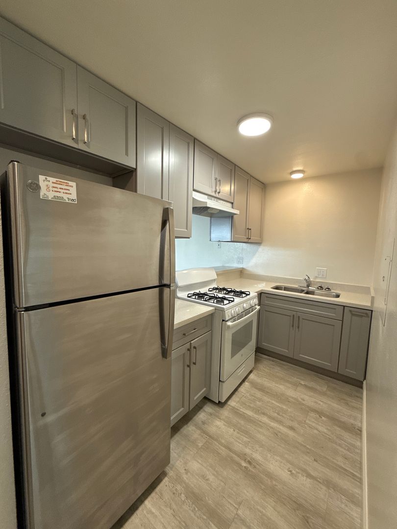 Location! Location! Close to Cal Poly. Generously sized 1 bedroom 1 bath apartment. Lease term: July 13, 2026- June 30, 2027. LVP (Luxury Vinyl Plank) flooring throughout. Large Livingroom, Kitchen, Bedroom with DOUBLE closet, and large Bathroom. Kitchen has Quality appliances. Apartment is suitable for 2 occupancy but monthly rent will be adjusted. On site coin-based laundry room available for tenant use only. Onsite, off street uncovered and covered parking spaces are available to purchase as well. No subleasing. Non smoking premise. No pets. Renters insurance is required. Close to public transportation, shopping, and MORE!